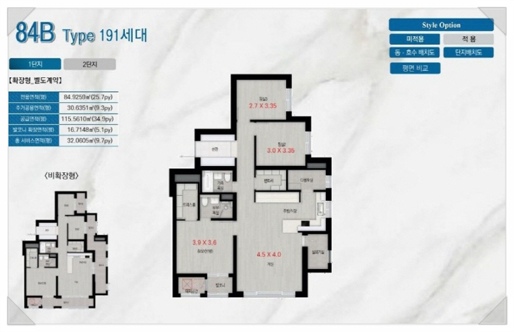 국민평형이라는 34평과 그보다 큰 38평형과 58평형만 남아 있어 아쉬웠으나